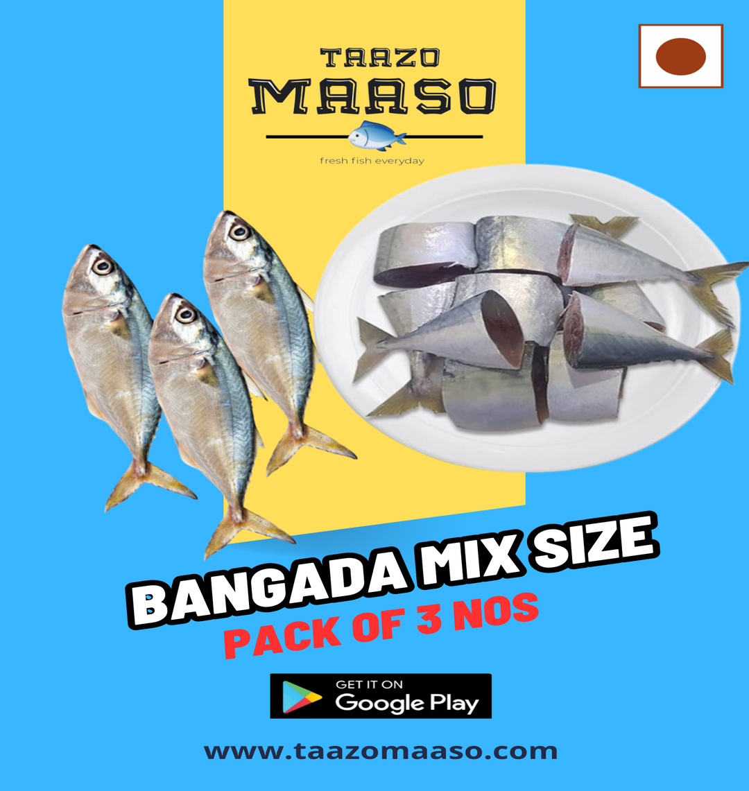 - Indian Mackerel – Bangada – 3 nos whole Fish – Cut into 2 pieces for curry purpose