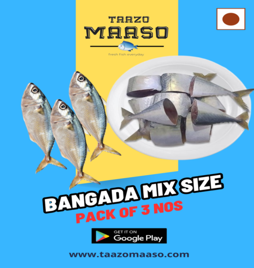 - Indian Mackerel – Bangada – 3 nos whole Fish – Head cut and cleaned.