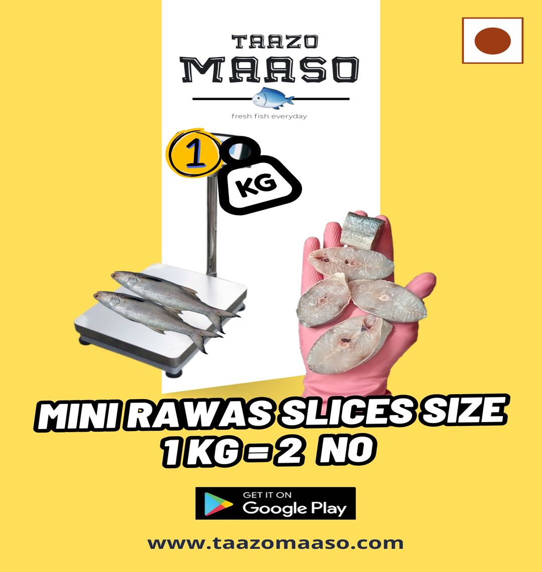 - 1 no of Mini Salmon -Small Rawas-(0.5 kg to 0.6 kg size whole fish)- Approximately 9 to 10 Steaks – Cut and cleaned with Head & tail